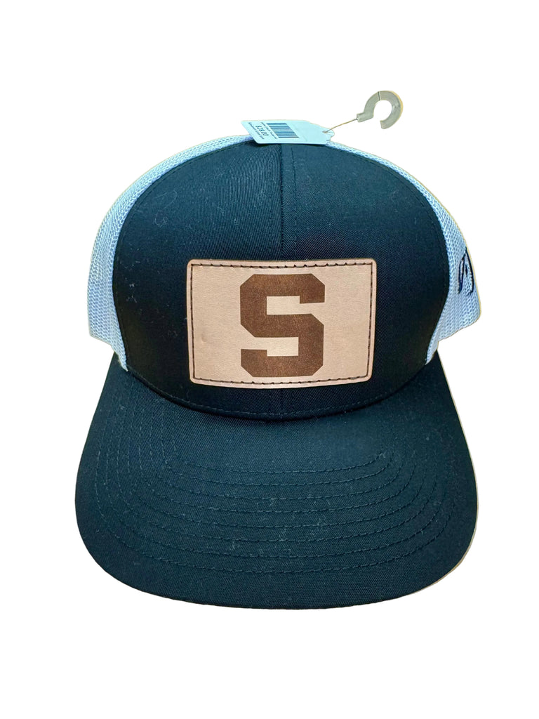 30% OFF SALE!! Black Leather Patch Trucker Hat