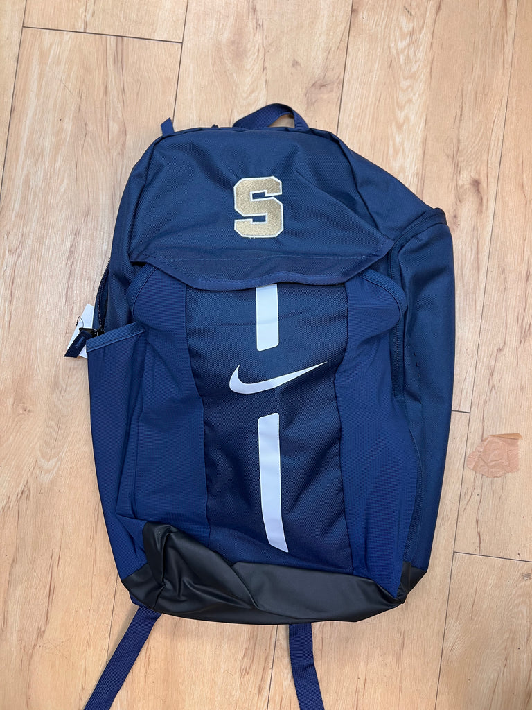 Navy Nike backpack. Lots of extras....side pouch pocket, water bottle pocket and front pocket.