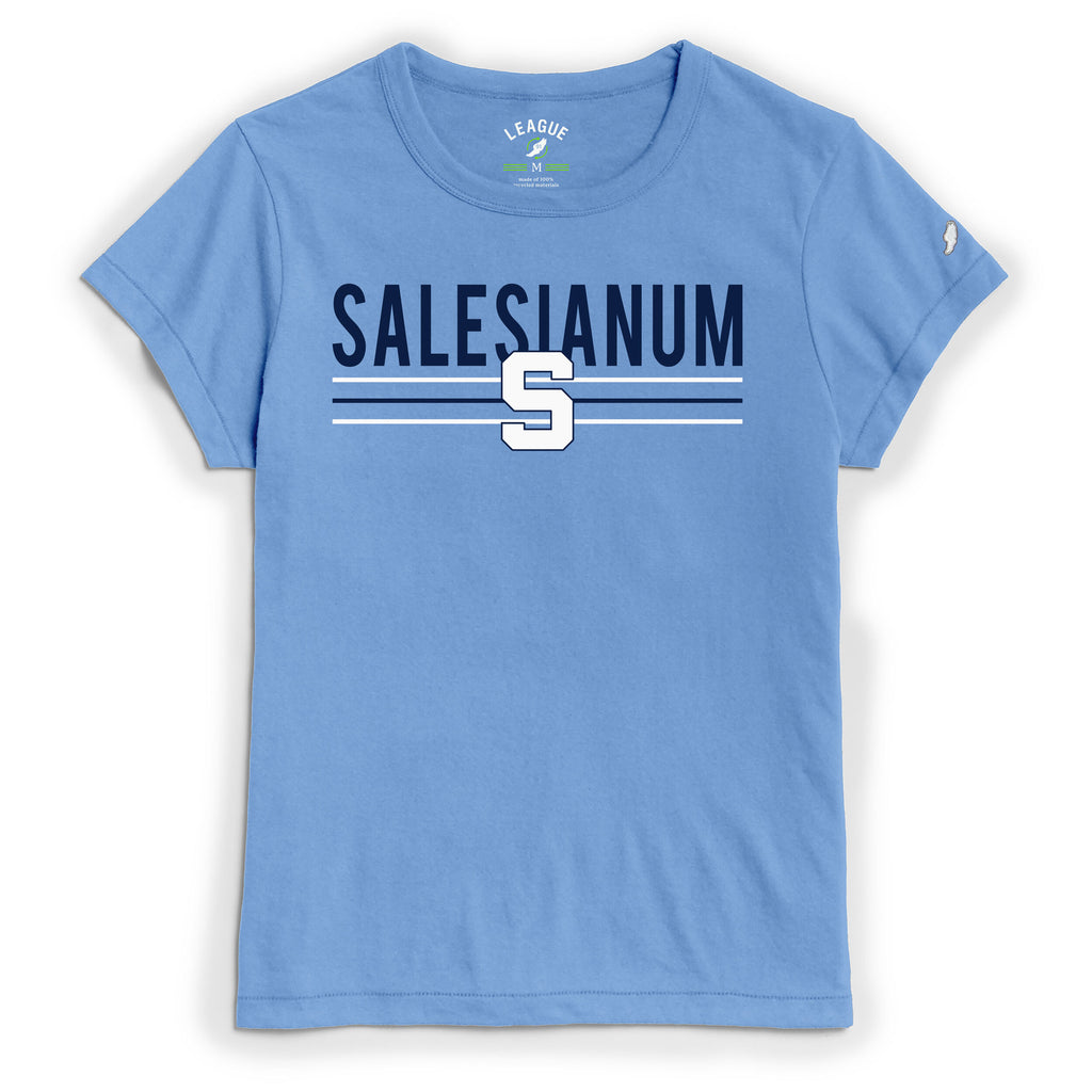 Soft women's Salesianum Tee in carolina blue. Offered in SM - 2XL.